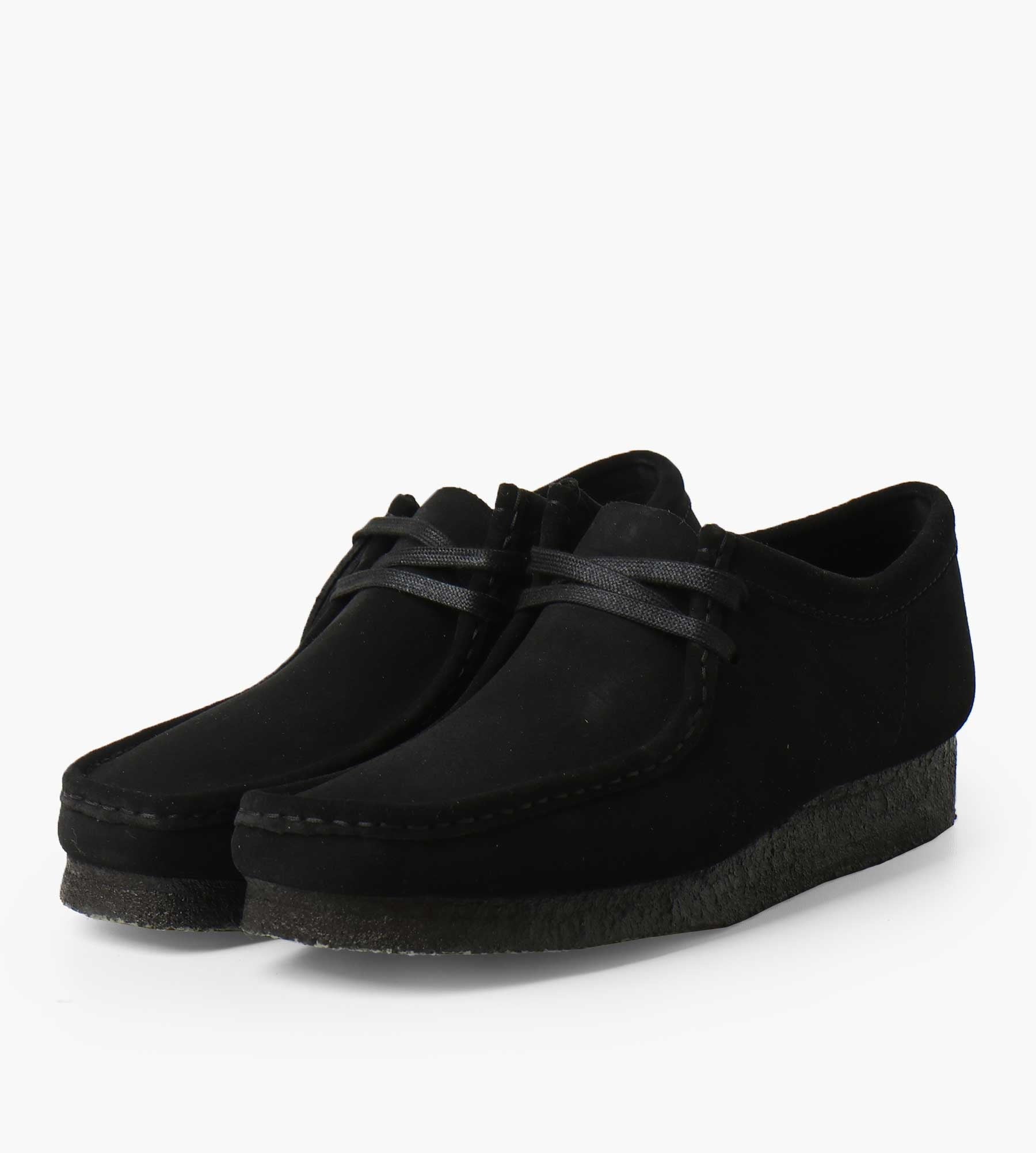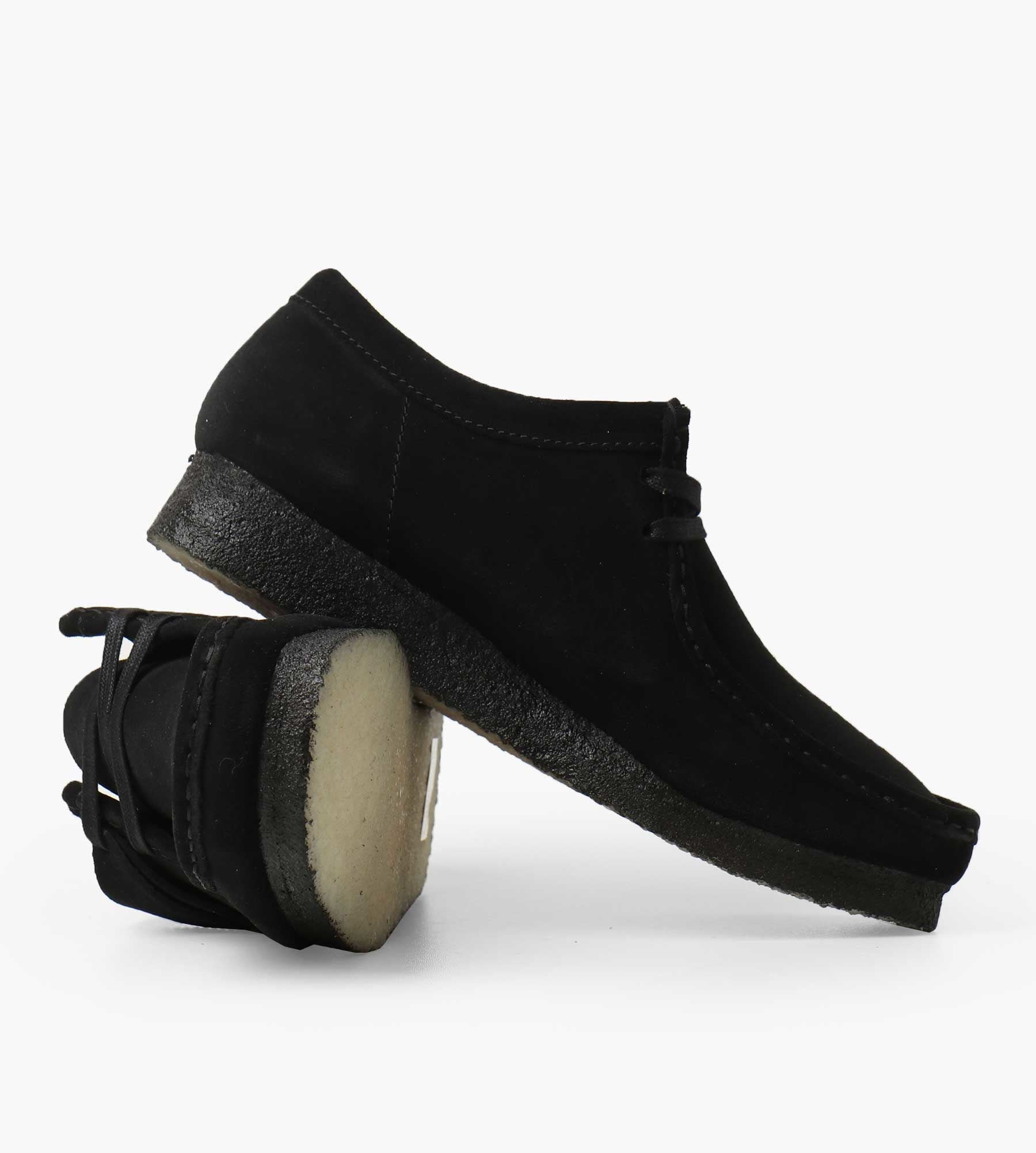 Clarks Originals Wallabee Black Suede These mid-top sneakers have, an upper made of suède and crèpe outsole. These shoes fit normal, we advice to take your standard size