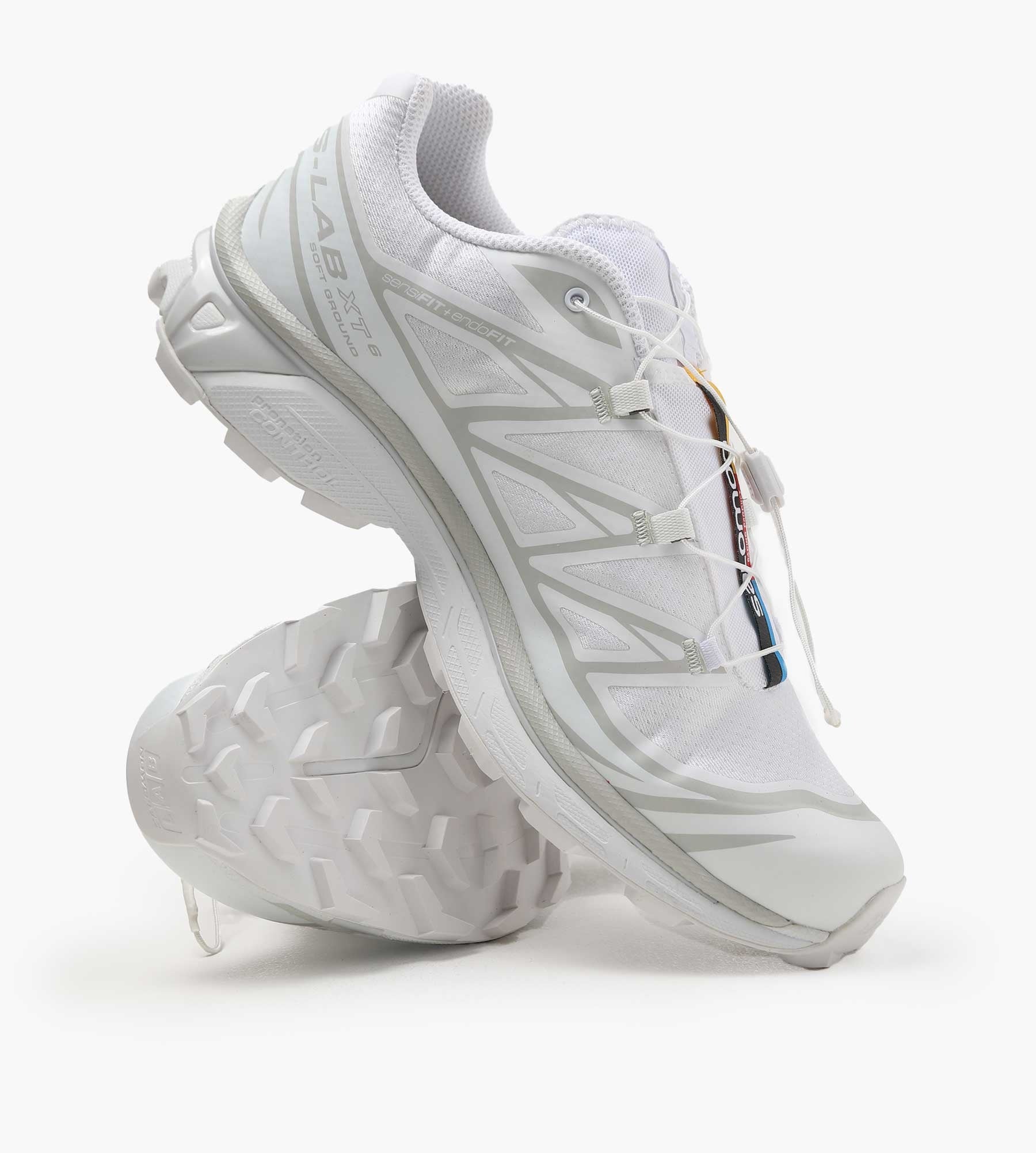The Salomon XT-6 White White Lunar Rock merges high-performance trail technology with clean, modern aesthetics. Designed for comfort and durability, these sneakers excel on both rugged terrains and city streets.